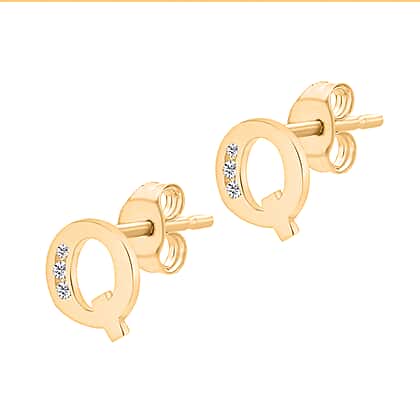 Q Initial Stud Earrings in 9K Yellow Gold Cubic Zirconia 7mm x 7mm