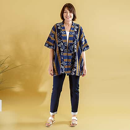 Bali Collection - 100% Cotton Jacket (One Size) - Blue and Yellow