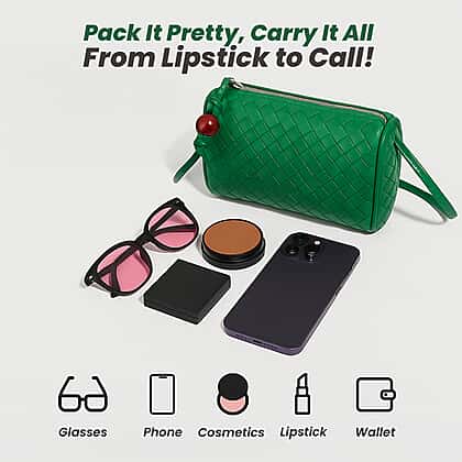 Step out in style with the Fully Lined Woven Crossbody Bag, the perfect accessory for those on the go. This stylish green bag combines functionality with fashion, crafted from durable leatherette with a secure zip exterior. Its compact size (20x14.5x7 CM) makes it ideal for everyday essentials, while the fully lined polyester interior includes a zipped pocket to keep your items organized and accessible. Whether you're running errands or enjoying an evening out, this crossbody bag blends seamlessly with any outfit, offering both security and style.