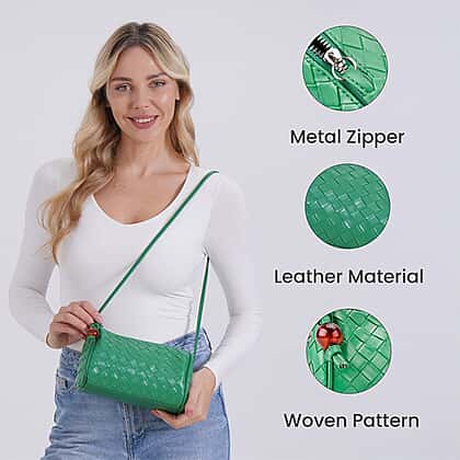 Fully Lined Woven Pattern Crossbody Bag - Green