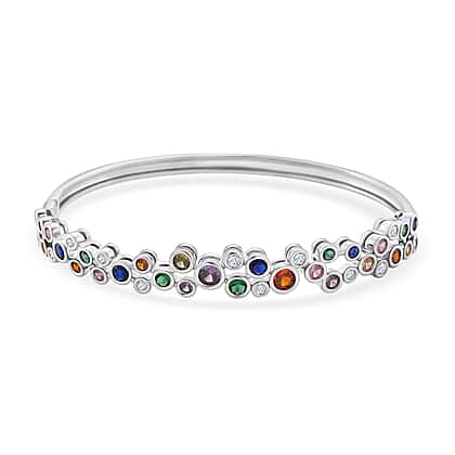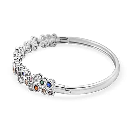 Bubble Collection - Multi Colour Cubic Zirconia Bangle (Size 7.5) in White Gold Plated 2.80 Ct.