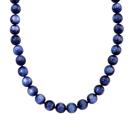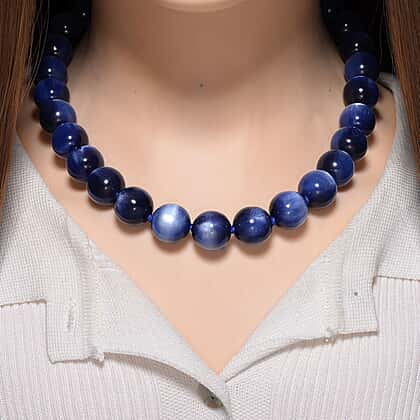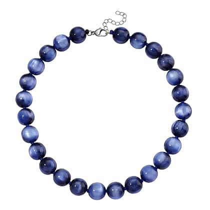 Blue Coloured Cats Eye Style Necklace with Lobster Clasp (Size 18 - 2 Ext) 340.00 Ct.