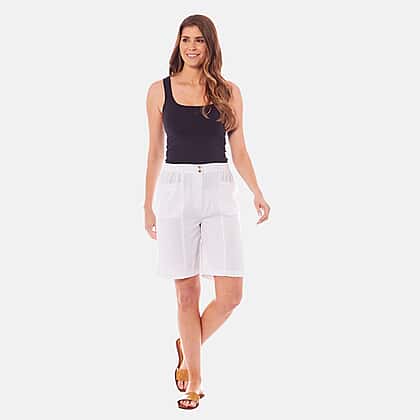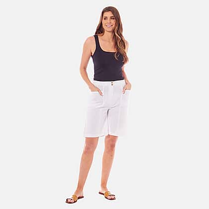Charlotte West - Ladies Linen Longer Short Length and Two Button Fastening with Zip Fly (Size 12) - White