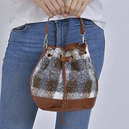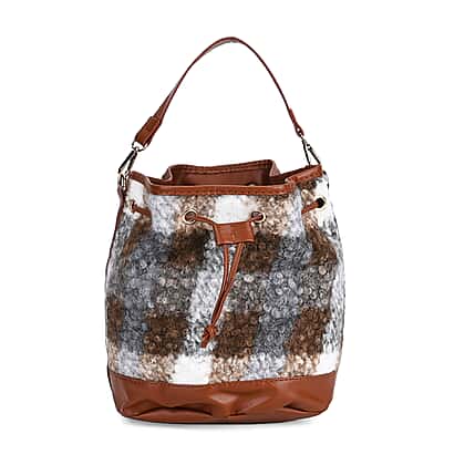 Crossbody Checkered Bucket Bag (Size 22x18x25 cm) - Brown & Beige