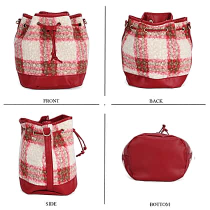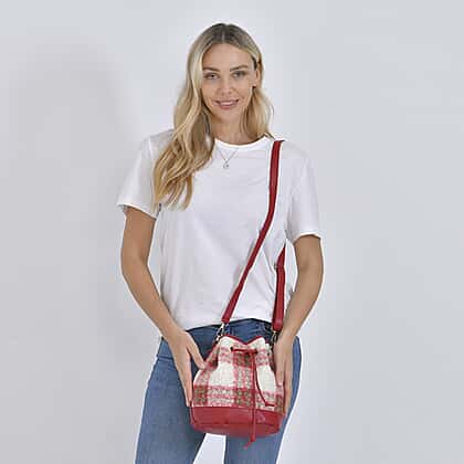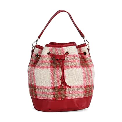 Crossbody Checkered Bucket Bag (Size 22x18x25 cm) - Red & Beige