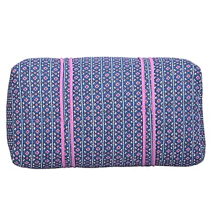 Add charm and function to your travels with this Blue Cotton Quilted Travel Bag, designed to be both stylish and spacious. Crafted from durable quilted cotton, it features a soft, textured finish that’s gentle to touch yet tough enough for regular use. Its roomy 60 x 32 x 32 cm interior easily accommodates essentials for gym days, weekends away, or overnight stays. The 31 cm high, 5 cm wide handles ensure easy hand or shoulder carry, while the zip closure keeps everything secure. The blue floral pattern with pink accents gives it a chic look that suits travel or daily use.