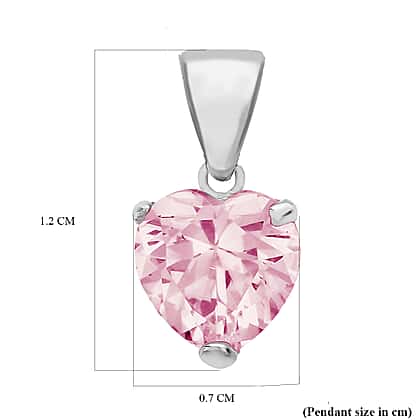 Pink Cubic Zirconia Solitaire Heart Pendant in Sterling Silver