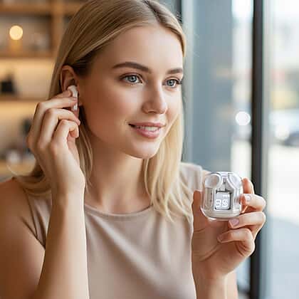 TWS Earbuds with Battery Display - 200mAh Charging Case - White