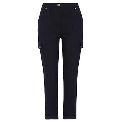 Add a refined touch to everyday dressing with the Emreco Bengaline Cargo Trouser in deep navy. Cut to ankle length with a mid-rise waist, these trousers combine flattering structure with easy comfort. Crafted from a soft viscose blend with a hint of stretch, they move beautifully with you. Side cargo pockets and stitch detailing give them a modern yet versatile appeal, perfect for smart-casual days or travel.