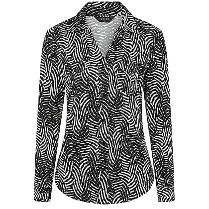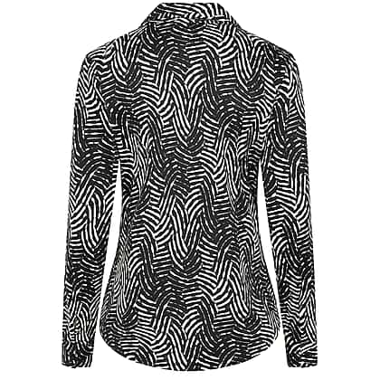Emreco Long Sleeve Wave Print Classic Collar Pocket Blouse (Size 12) - Black & White