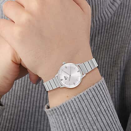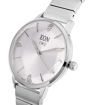 LIMITED EDITION - EON SWISS Movement Natural Diamonds 5 ATM Watch in Stainless Steel Strap - SIlver