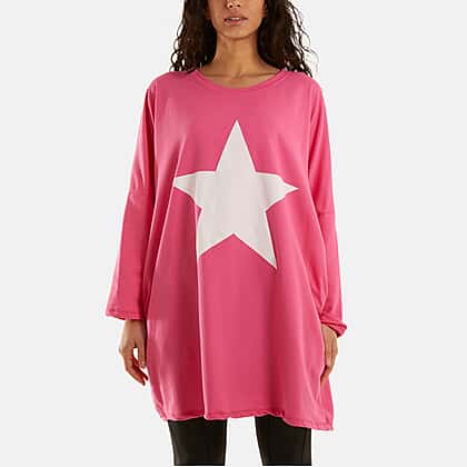Nova of London - Foil Star Side Pockets Sweatshirt Dress (One Size) - Hot Pink
