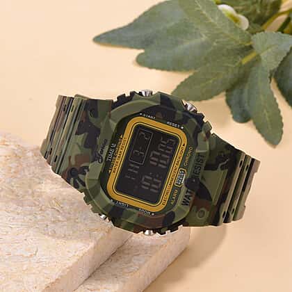 If you're a watch lover who values style and practicality, the GENOA TIME V2 is perfect. This watch comes in a cool camouflage green with a durable plastic case and a clear black LED dial. It has all the essential features: date, week display, stopwatch, night light, and an alarm clock. The comfy TPU strap matches the camouflage design and is held securely with a stainless-steel buckle. With added durability from PNP steel plating and solid steel back, it's water-resistant up to 5ATM and built to handle everyday use with a long-lasting battery.