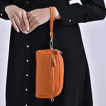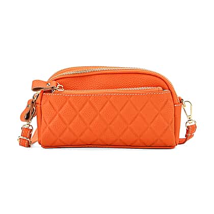Mega Closeout - 100% Genuine Leather Embossed Crossbody Bag - Orange