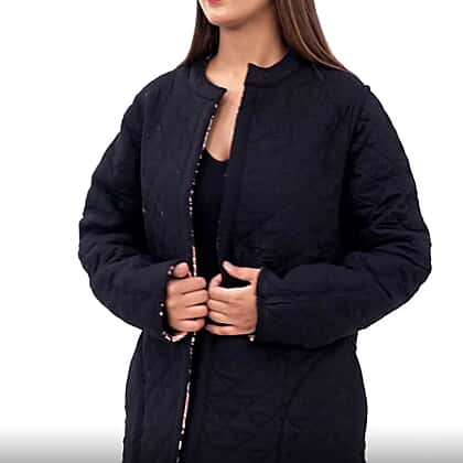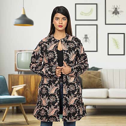 Handmade Printed Reversible Quilted Women's Jacket in Black - Size S (8-10 )