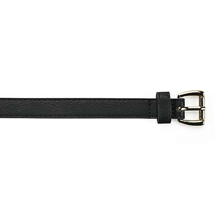 - Classic black design with a sleek silver-tone buckle
