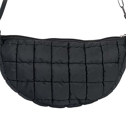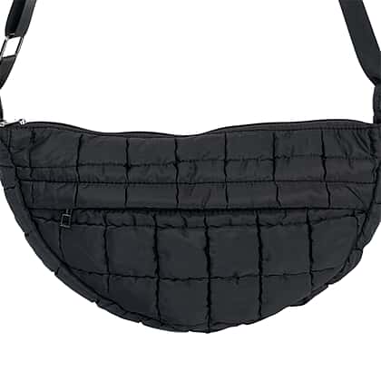 Quilted Puffer Belt Bag with Adjustable Webbing Strap - Black