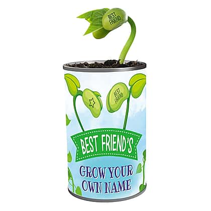 A Grow Your Own Name gift includes a personalised magic bean and nutrient rich soil in a beautifully designed can.