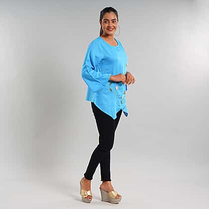 • BLUE COLOUR: The blue colour offers a timeless appeal to this kimono top