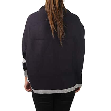Kris Ana Longline Border Women's Cardigan - Navy and Grey