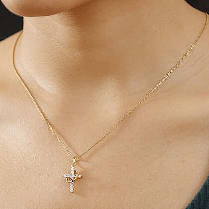 LUXURIANT 0.50 Ct. Lab Grown Diamond Cross Pendant in 18K Vermeil Yellow Gold Plated Sterling Silver