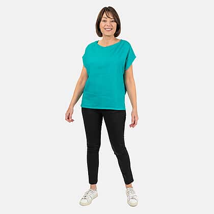 This lady's crew neck linen top is a versatile summer look. It has a semi-fitted shape, wide crew neck, grown-on sleeves and a back keyhole design finished with a button fastening. The side vents and loose fit keep you feeling comfy all day.