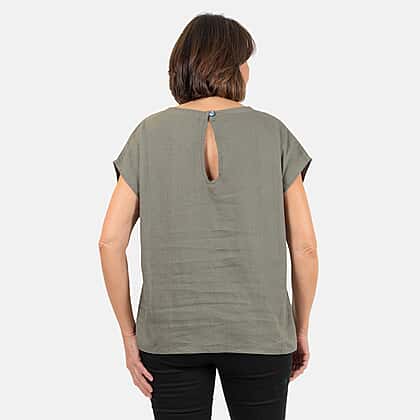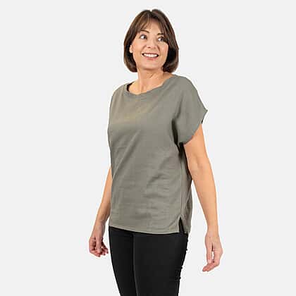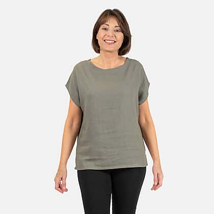 Ladies Crew Neck Linen Top (Size 10) - Khaki