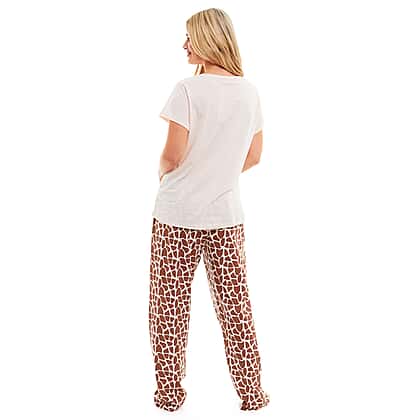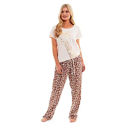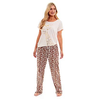 Unwind in comfort with this charming ladies’ pyjama set, featuring a slogan T-shirt and all-over print trousers. Made from 100% cotton, the soft and breathable fabric ensures a cosy feel all night long. The short-sleeve top has a round neckline and a relaxed fit, while the loose-fitted trousers come with an elastic waistband and adjustable drawstrings for a perfect fit. The "Head in the Clouds" print with a giraffe design adds a playful touch, making it ideal for lounging or bedtime. Designed for effortless comfort, this set is perfect for dreamy nights and lazy mornings.