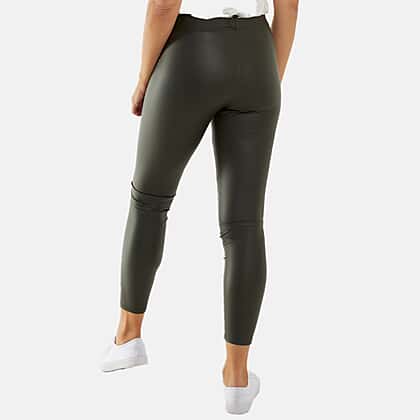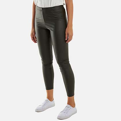 Perfect for adding a polished touch to your casual outfits, these leather-look leggings combine the sleek leather aesthetic with the stretch and comfort of Ponte fabric. The elasticated waistband ensures a secure fit while providing maximum comfort for lounging, household tasks, or even a relaxed dinner at home. The versatile black design makes them easy to pair with oversized jumpers, tunics, or your favourite tops, making them an ideal choice for relaxed days indoors and errands. Their pull-on style eliminates fuss, letting you focus on your day while staying effortlessly stylish. Whether tidying up the house or enjoying a cosy day, these leggings deliver comfort and effortless style.