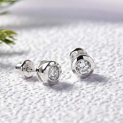 LUXURIANT 0.50 Ct. Lab Grown Diamond Solitaire Stud Push Post Earring in Rhodium Overlay Sterling Silver (SI-GH)