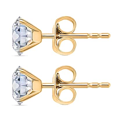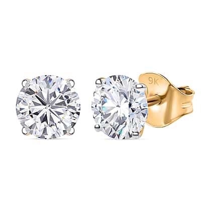 LUXURIANT 2 Ct. Lab Grown Diamond Brilliant-Cut Solitaire Stud Push Post Earring in 9K Yellow Gold (SI-GH)