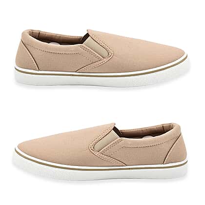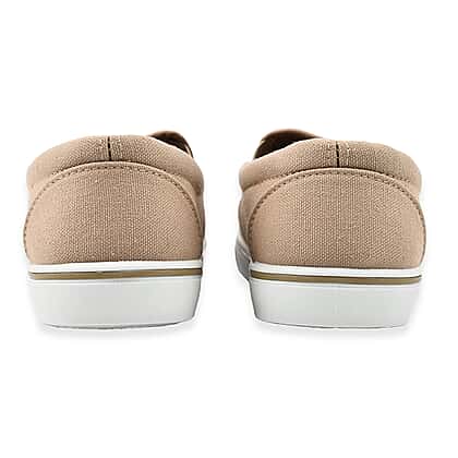 Keep things effortlessly stylish with these Men's Boston canvas shoes in taupe. Designed for comfort and ease, these slip-on trainers combine a breathable canvas upper with elasticated sides for a smooth fit. The neutral tone makes them easy to match with a wide range of casual outfits, while the racer stripe along the sole adds a refined touch. Built for long days on your feet, they deliver laid-back comfort and a clean, versatile look suitable for any casual occasion.