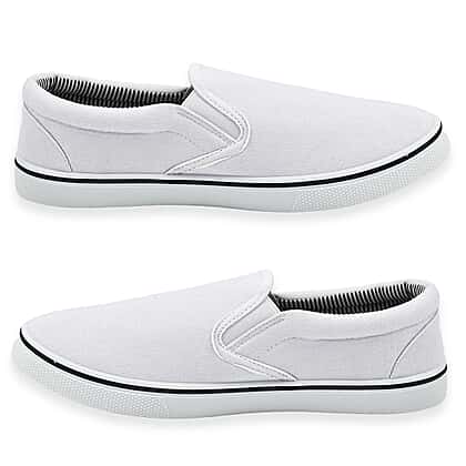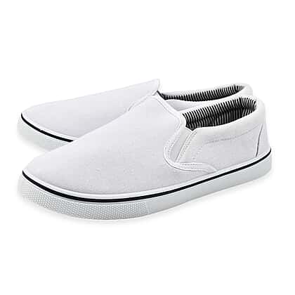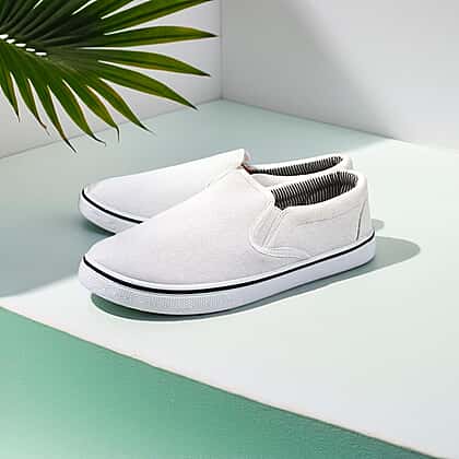 Brighten up your wardrobe with these Men's Boston canvas shoes in white. Sleek and simple, these slip-ons effortlessly bring clean design and everyday comfort together. The canvas upper keeps them breathable, while the elasticated sides allow easy on-and-off wear. A racer-striped rubber sole adds a subtle touch of definition and grip. Fresh, lightweight, and endlessly wearable, these shoes are the perfect match for sunny days, casual walks, and laid-back outfits.
