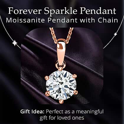 1.79 Ct. Moissanite Round Solitaire Pendant with Chain (Size 20) in 18K Vermeil Rose Gold Plated Sterling Silver