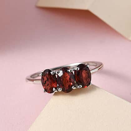 Mozambique Garnet Trilogy Ring in Sterling Silver