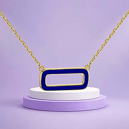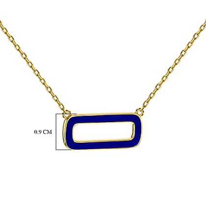 Blue Enamel Rectangle Frame Necklace in Sterling Silver Yellow Gold Plated