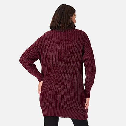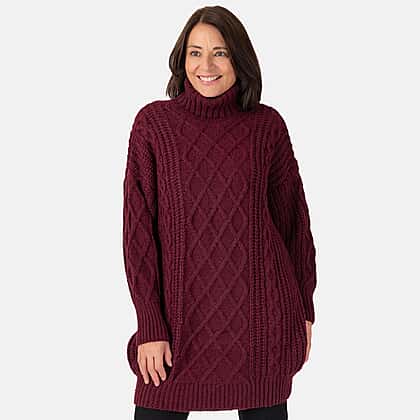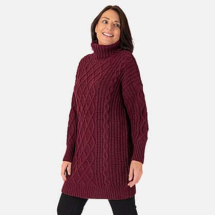 Stay warm and effortlessly stylish in the Nova of London cable knitted roll neck jumper dress in berry. Crafted from soft polyester, this cosy piece combines comfort and elegance with its intricate cable knit design and flattering longline fit. The roll neck adds a touch of sophistication while keeping you snug during cooler days. Perfect to pair with leggings, tights, or boots, it’s an ideal choice for casual outings or relaxed evenings indoors. Designed to provide both warmth and style, this jumper dress is a timeless winter essential that keeps you comfortable without compromising on fashion.