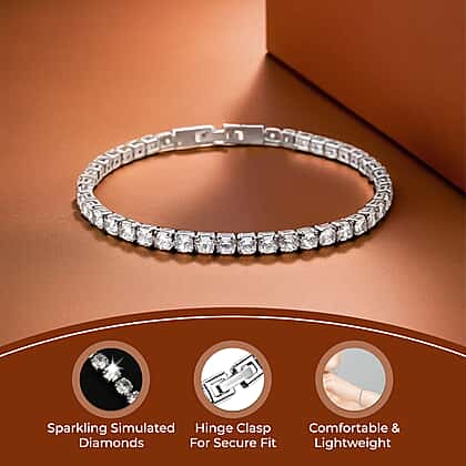 NY Close Out Deal - Simulated Cubic Zirconia Diamond Tennis Bracelet (Size 7.5) in Silver Tone 11.00 Ct.