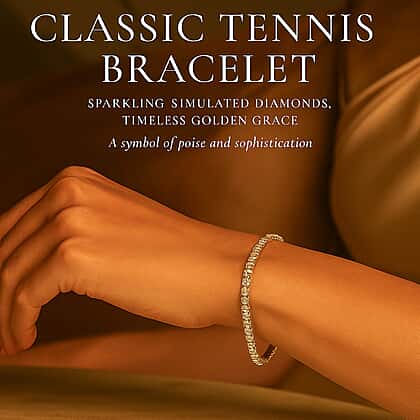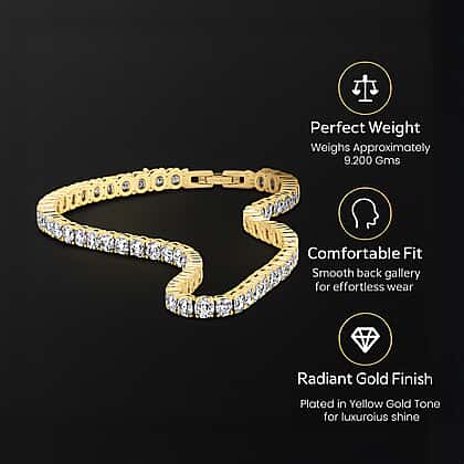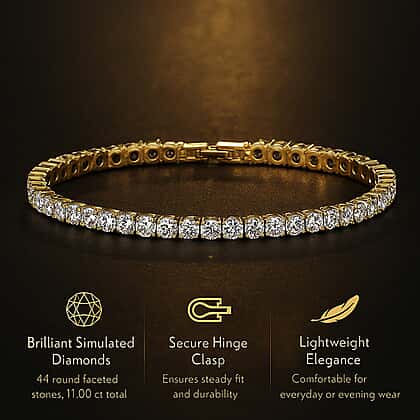 Simulated Diamond Tennis Bracelet (Size - 7.5) in Yellow Gold Tone