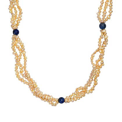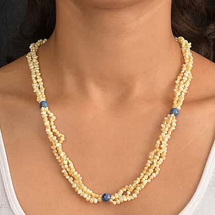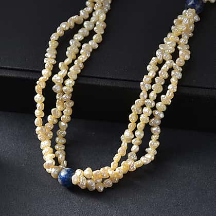 Yellow Dyed Pearl & Sodalite Stone Endless Necklace 280.00 Ct.