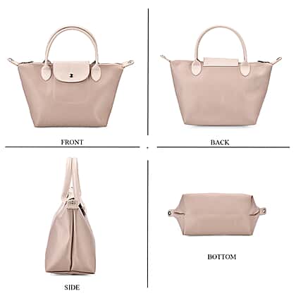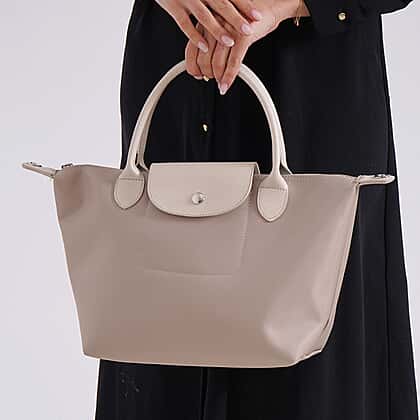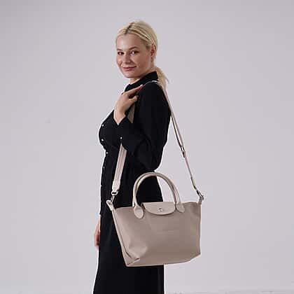 Stylish Water-Resistant Tote Bag with Top Handles & Strap - Beige