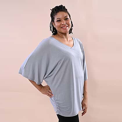 Take on summer days looking and feeling your absolute best with this plain pattern grey women's top from Tamsy. Made from a comfortable fabric to make this top perfect for the summer season. With a flattering V-neckline and three-quarter sleeves, this top keeps you comfortable throughout the day. Mix and match with denim jeans or leggings and sandals for a casual appearance.