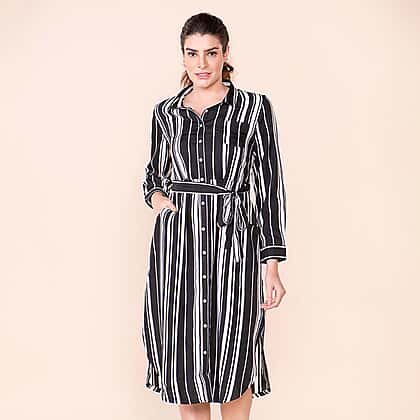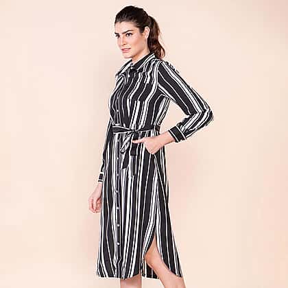 This crepe shirt by TAMSY flaunts bold stripes in black and white colours. The Size-8 shirt is made of 100% polyester for regular wear. The crepe shirt is stylish and will be a welcome addition to your smart casuals. It can be worn in spring and summer. The monochromatic design theme is a tribute to minimalist design.