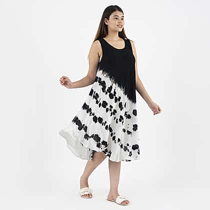 Give your summer wardrobe a stylish look with this all-new tie-dye umbrella dress. It is made from viscose fabric featuring a round neck and sleeveless design. Also has a flowy umbrella cut hemline offering a soft and comfy feel. A perfect dress to be worn during the summer holidays or on a casual evening.