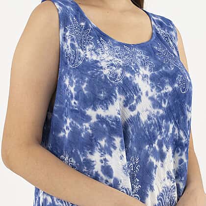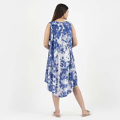 Give your summer wardrobe a stylish look with this all-new tie-dye umbrella dress. It is made from viscose fabric featuring a round neck and sleeveless design. Also has a flowy umbrella cut hemline offering a soft and comfy feel. A perfect dress to be worn during the summer holidays or on a casual evening.