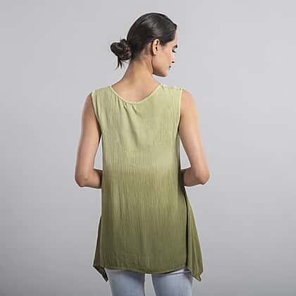 Keep your casual styling cool and comfy with this sleeveless top from Tamsy. Made from soft and breathable viscose fabric to feel pleasant against your skin. The timeless ombre pattern on this top creates a fashionable appearance. The dipped hem design gives an artistic appeal to this kaftan. Coordinate this V-neck top with a pair of jeans and sneakers for a casual flair.