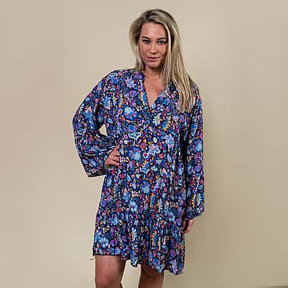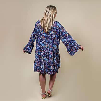 Amp up your style with this exquisite navy colour knee-length smock dress from Tamsy. The multicolour paisley print with ruffled hemline on this smock dress creates an eye-catching appearance. Made from 100% super-soft viscose fabric to keep you at ease around the clock. A relaxed-fit silhouette with V-neckline gives a casual appeal to this beautiful smock dress.