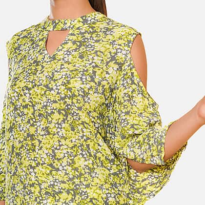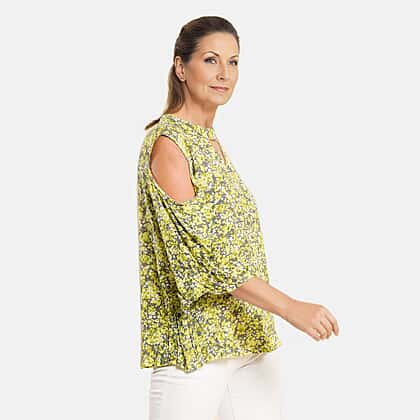 Stand out this fashion season and show off some stylish look with a Tamsy floral printed cold shoulder top. Cut to a relaxed, loose-fit design with pretty floral print all over the fabric and features a crew neckline with cold-shoulder three-quarter sleeves. The top is made from 100% viscose material, which is lightweight, durable, soft and comfy. Pair this easy-to-wear top with your favourite denim and flip-flops for a summer holiday look to take you out from sofa to sun!