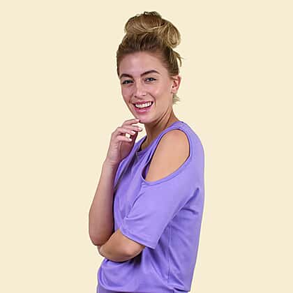 No wardrobe is complete without well-rounded basics with the cold shoulder top from Tamsy. The fashionable cold shoulder design offers an on-trend flair to this top. The super-soft and lightweight viscose blended fabric provide a pleasant feel around the clock. The regular fit silhouette conforms to your curves for a flattering appeal. The eye-catching lilac colour of this cold shoulder top can be paired with a variety of bottoms.