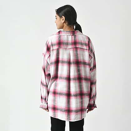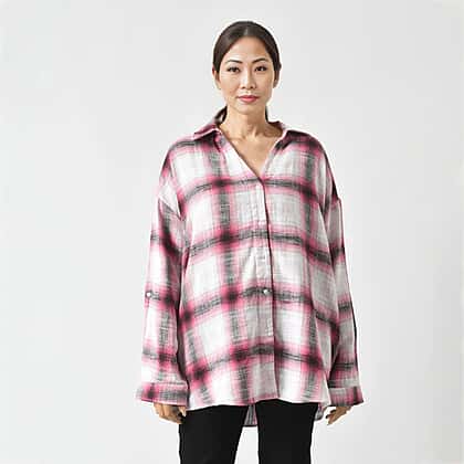 TAMSY Pure Cotton Check Pattern Shirt with Two Pockets